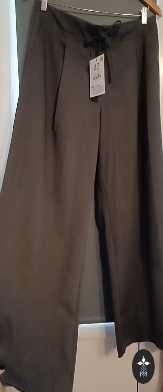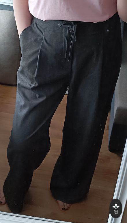 Püksid õhuke kangas Suurus 40 Pikkus 101 cm Materjal: polüester 65%, viskoos 32%, elastaan 3% Talje 42 cm x 2 Puusad 50 cm x 2 2 küljetaskut