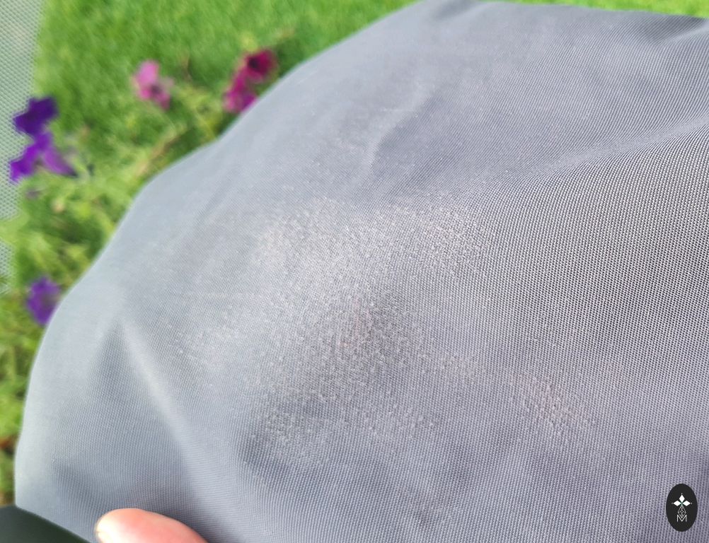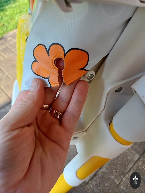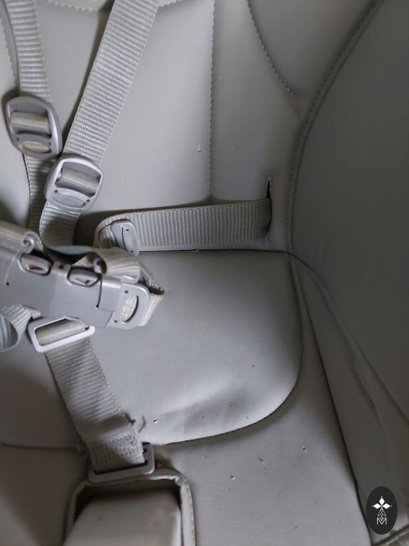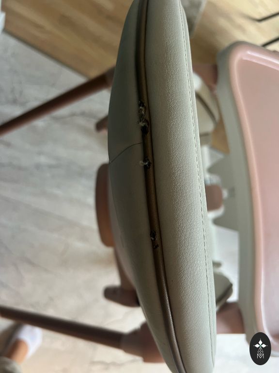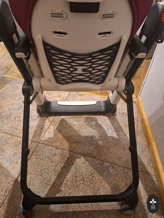 No mugurpuses saplīsa gumijas kabatiņa, lai gan mēs to nemaz neizmantojām. Ja ir vēlme, to var nomainīt. Sēdvieta bez skrāpējumiem, lieliski saglabājusies, pēc viena bērna.