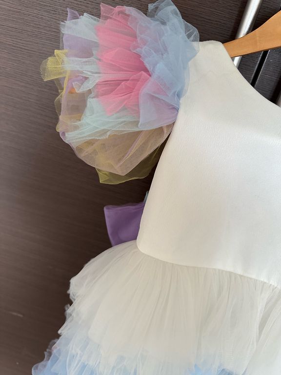 чехле в шкафу, помялось, нужно отпарить! Так как ткань очень деликатная, Возможно где то есть пару незначительных зацепок,которые особо в глаза не кидаются. Super svinīga, ļoti pūkaina kleita. Kleita ir šūta pēc pasūtījuma, otras tādas nekur nav. Kleita ir izgatavota no satīna, ar tilla apakšsvārkiem,pilnībā roku darbs. Pērlīšu josta un bantīte ir izgatavotas ar rokām. Katra pērlīte ir piešūta ar rokām. Bantīti var noņemt. Izmērs 116-122. Tā kā ilgi bija skapī , tā saburzījās, tā ir jāizgludina! Tā kā audums ļoti delikats, Varbūt kaut kur ir pāris nelieli ķibeļi, kas nav īpaši pamanāmi.