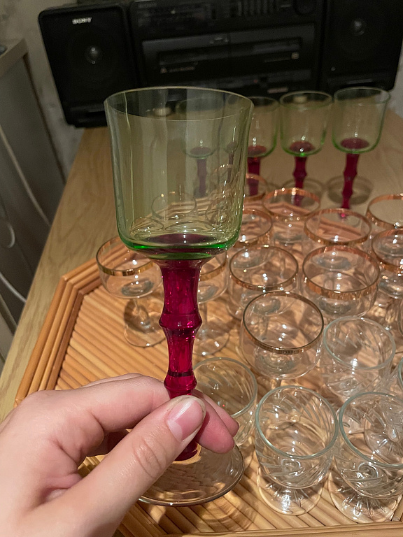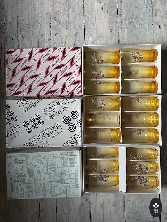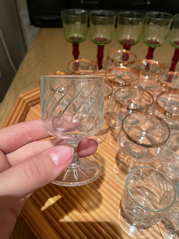 Senos, gerai išsilaikiusios taurės... 100 ml talpos... graviruotos, 12 vnt... stabilios, malonios laikyti, sukelia malonų jausmą! + pristatymas