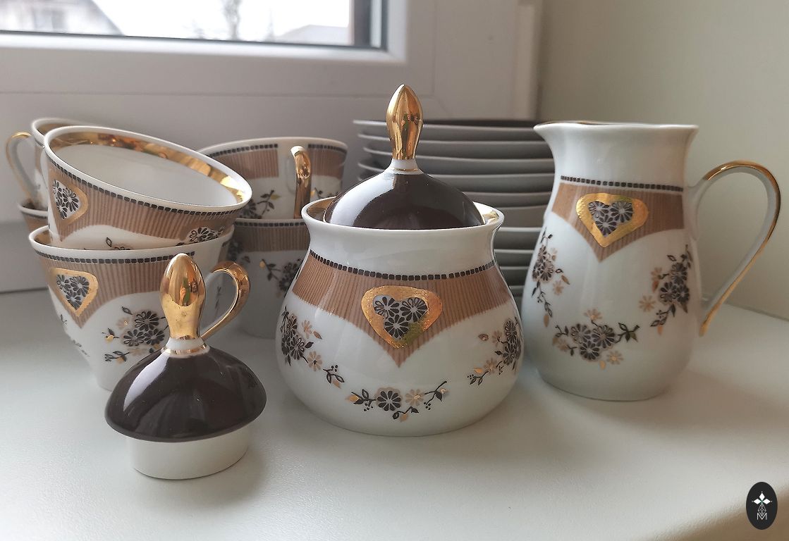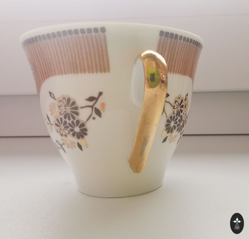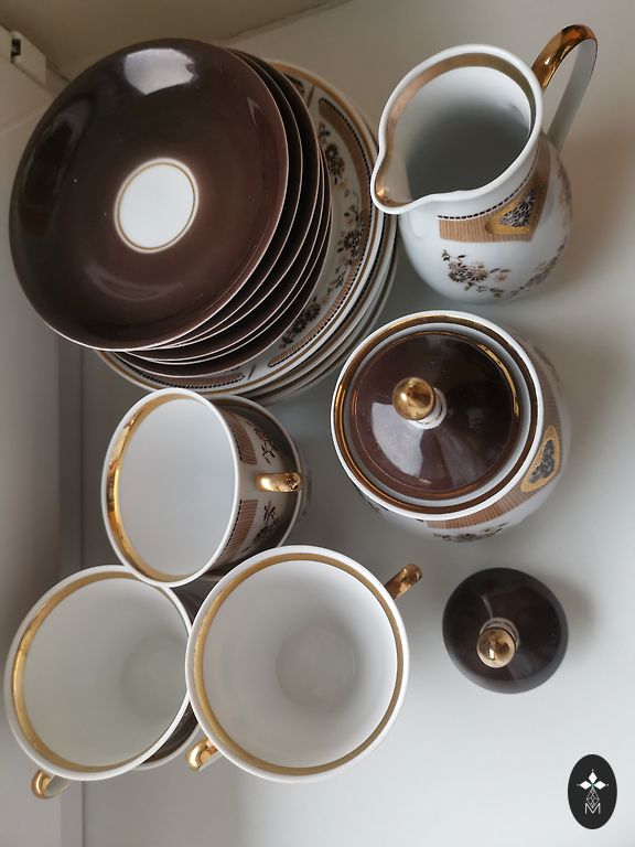 Praod, murdumised ega murdumised puuduvad, ainult serva kuld on veidi kahjustatud. Küljel on peen kuldne joon ja väike roheline punkt. Roheline tempel.