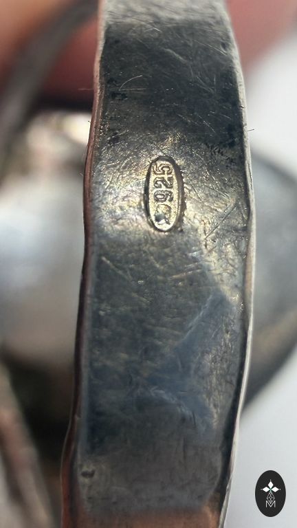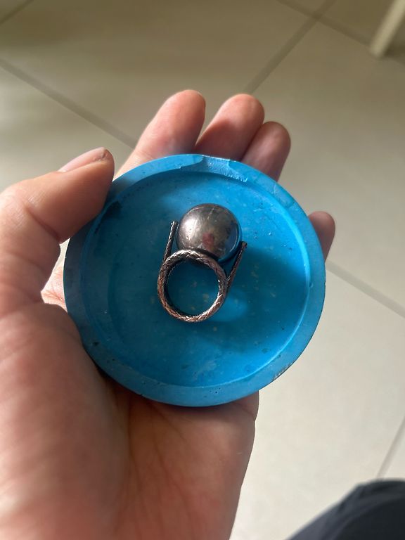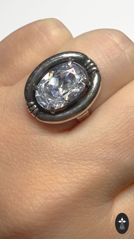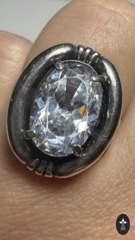 Silver ring size 17, but the stone tends to fall out, definitely can be fixed. And silver stud earrings.