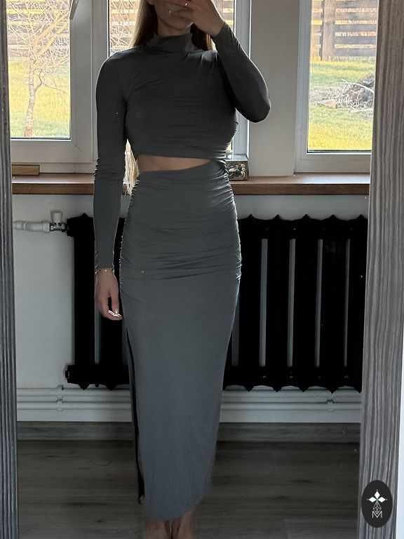 Holivudas cienīga kleita. Tikai reizi vilkta. Kleita aršķēlumu, iešūtu krušturi, pliku muguriņu, un regulējošām lencītēm.