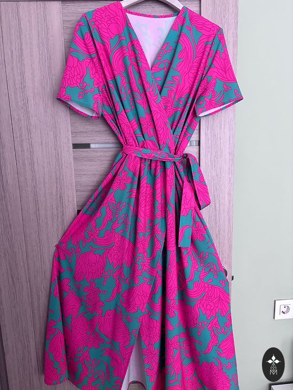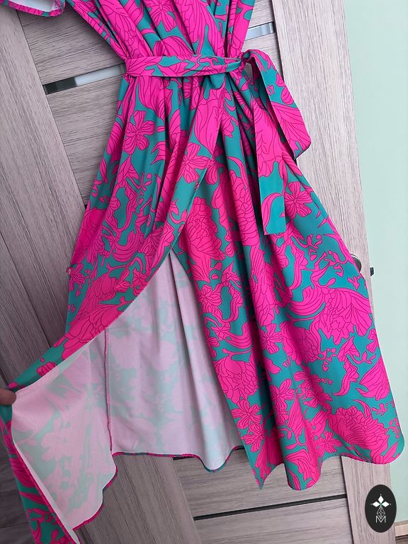 Новая. Привезена из Украины. Можно носить как платье, тунику, рубашку. Очень красивая, но, к сожалению, мне мала. Длина спереди 85 см, сзади 94-95 см. Грудь 47-48 см. Рукава 57 см.
