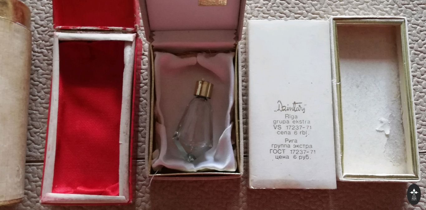 Mazā smaržu pudelīte “Vecrīga”. Iekšā mazāk par pusi.