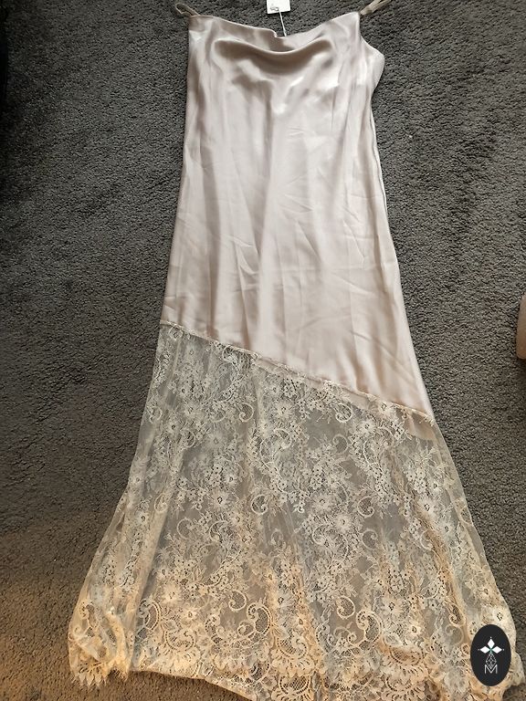 A very luxurious set of dress and cape, completely new, ideal for M, L size. On my XL, however, it's too tight. Nothing shines through, looks fantastic on the figure. The fabric is very good.
