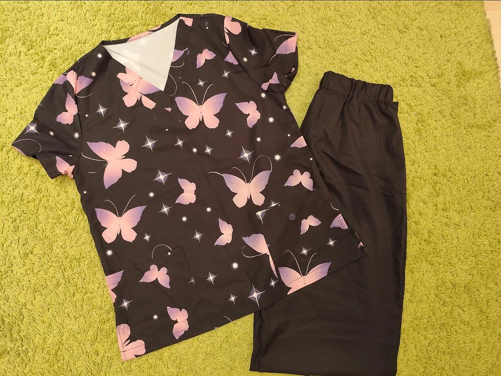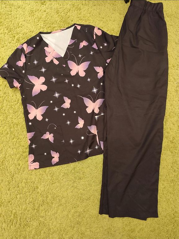 Suit size 48-50, top blouse is new, pants were worn 2 times. Pants length 106 cm.