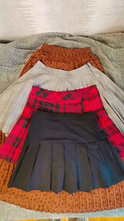 Forši mākslīgās ādas svārciņi - glaimojoši kupli, ar dubulto volanu. Josta uz gumijas, stiepjas plaši, materials patīkams, diezgan mīksts.