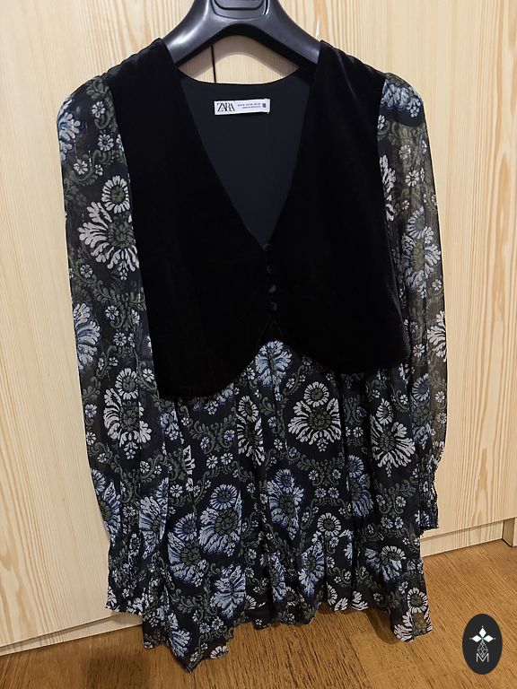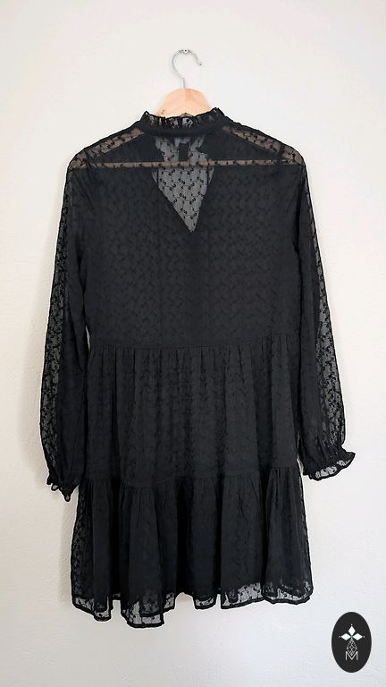 Mežģīņu kleita ar atvērtu muguru.Viduklī caurspīdīgs posms. Rāvējslēdzējs mugurpusē.