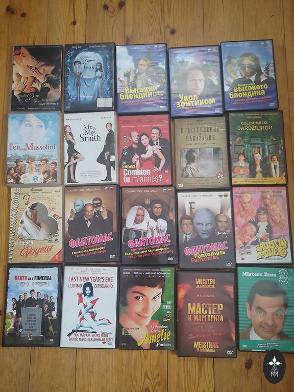Selling videotapes with cartoons and movies. Various languages. 7 tapes for one price.