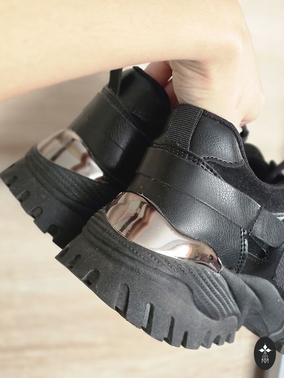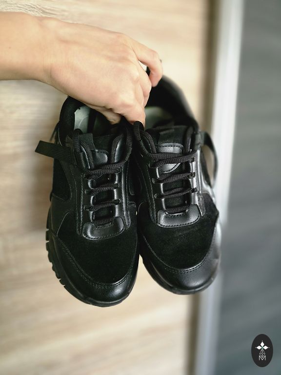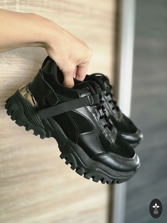 Melnas ādas COS kurpes uz pilnas zoles. Melna plata ādas siksniņa, virs potītes, regulējas ar klipsīti.