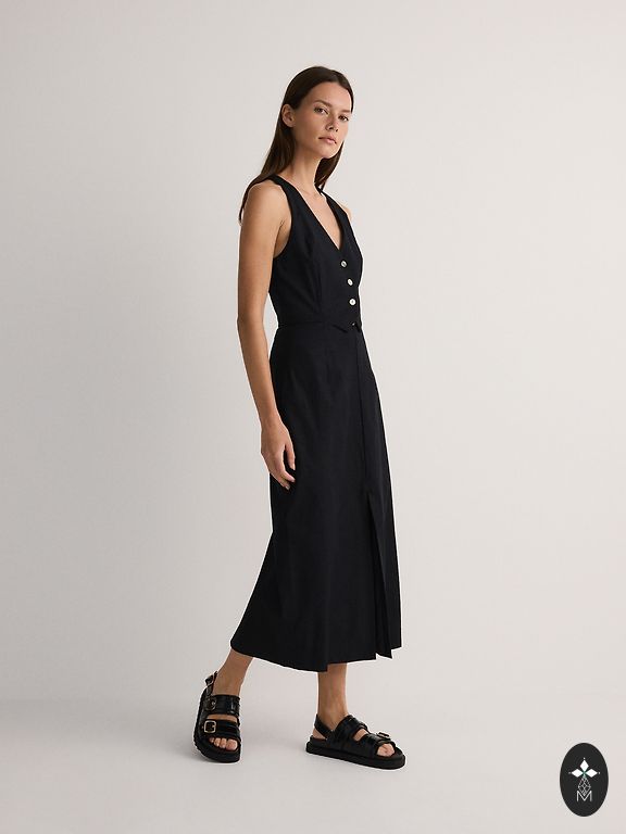 Natūralios medžiagos KAPPAHL KAY DAY oversized laisvo silueto suknelė. Aukštos kokybės, lengva, ne standi. 100 % linas. Šonuose apačioje yra įpjovos. Suknelė pažymėta kaip M dydžio, bet ją galima susiaurinti raišteliais, todėl ji yra laisvo dydžio ir tinka didesnių dydžių moterims. Ilgis 130 cm, krūtinė ~65 cm, juosmuo 70 cm x 2. Suknelė įsigyta kelionės metu, dėvėta du kartus, nauja.