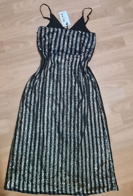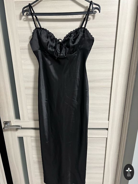 Один размер, подойдет для большого M, определенно L и также маленького XL. Ткань эластичная. Очень качественное платье.