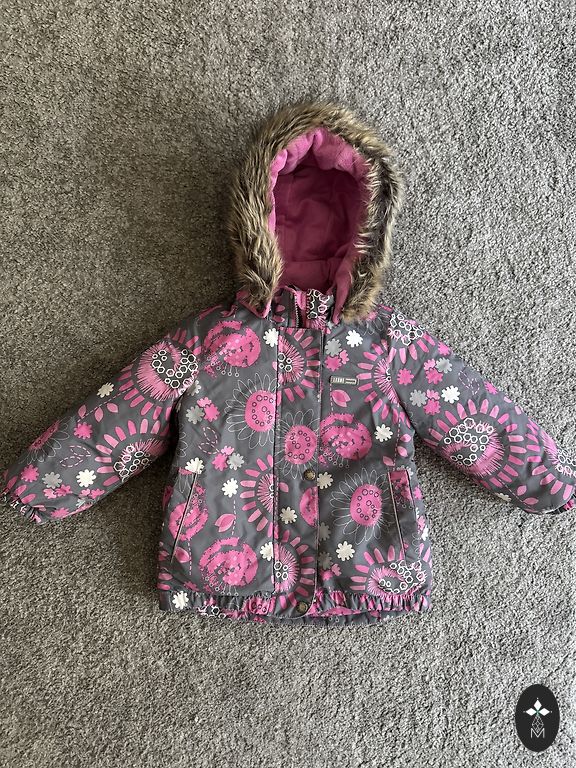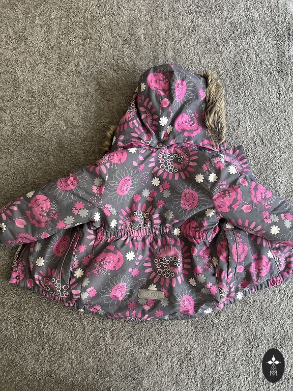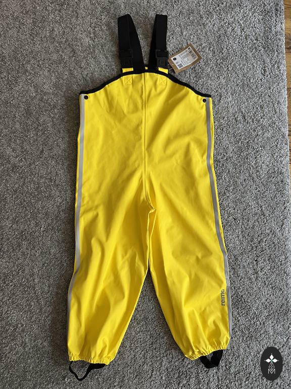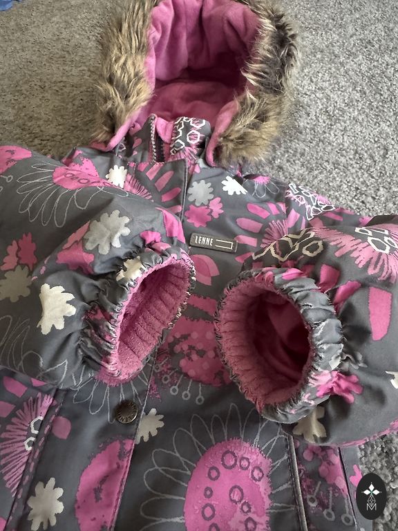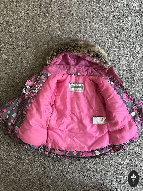 Gražus, lengvas, patogus ir vėjo nepraleidžiantis kombinezonas su fliso pamušalu. Vienoje kojinėje yra įtrūkimai elastinėje juostoje (matoma paskutinėje nuotraukoje), tačiau tai neturi įtakos jo naudojimui. Kita elastinė juosta yra nesugadinta.