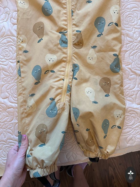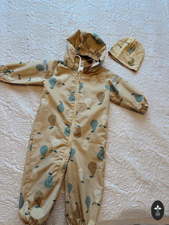Ne sezono komplektas su defektais: šiek tiek nusidėvėję kelnių ir rankovių kraštai, kelnių guminės juostos nesilaiko, lipnios juostos prastai laikosi. Gali būti nedideli naudojimo pėdsakai.