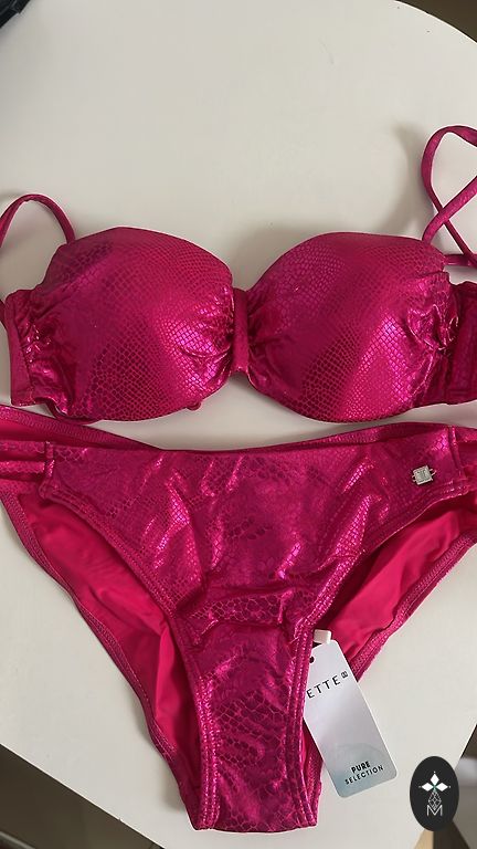 Pārdodu divus jaunus peldkostīmu/apakšveļas komplektiņus – viens bēšā krāsā, otrs maigi rozā. Foto izskatās dzeltenīgs, taču dzīve ir bēšs. Nedaudz saburzīts izskatās, bet vilkšanai netraucē. Neesmu ne reizi vilkusi, vienkārši stāv skapī un gaida savu īsto valkātāju. Ļoti smuki, sievišķīgi un ērti.