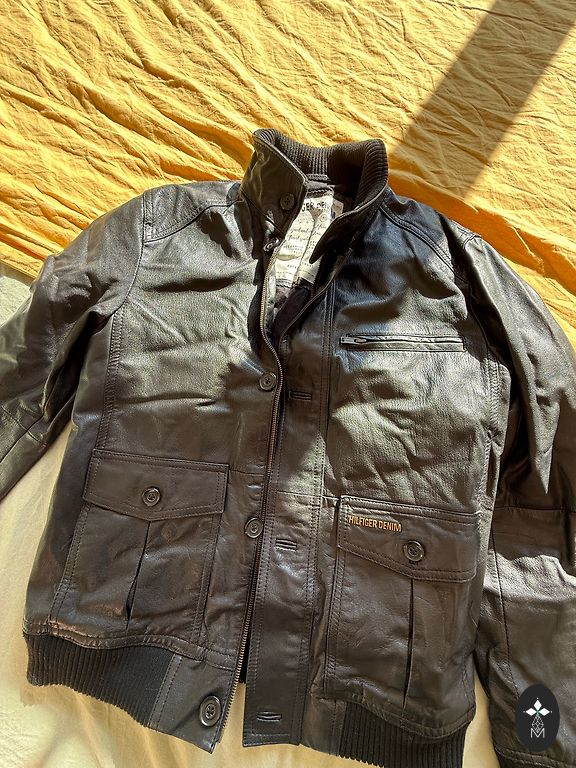 Nurodytas dydis XXL, bet tiks L. Vyras dėvi L. Dėvėta labai mažai. Tik ant vienos rankovės šiek tiek subraižyta oda. Matyti nuotraukoje. Kainavo labai brangiai, virš 700 eurų. Nuo pažasties iki pažasties 58 cm. Siuntimas papildomai.