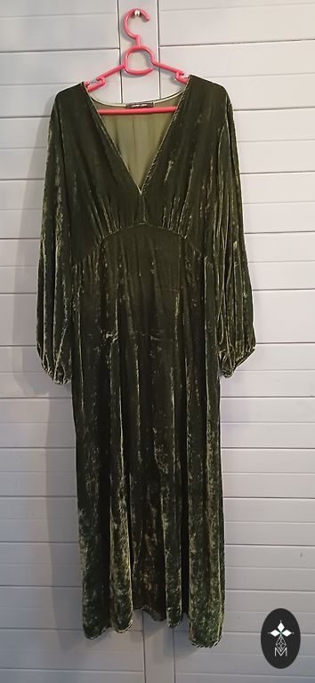 Lina wrap style dress with pockets from the Latvian brand Kolibri Design. Dress length is 134 cm, width without tightening is 75 cm. Each belt (there are 2, on each side) length is 142 cm. Thus, the belt can be tied twice around the waist.