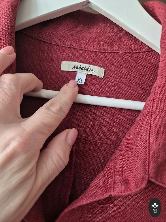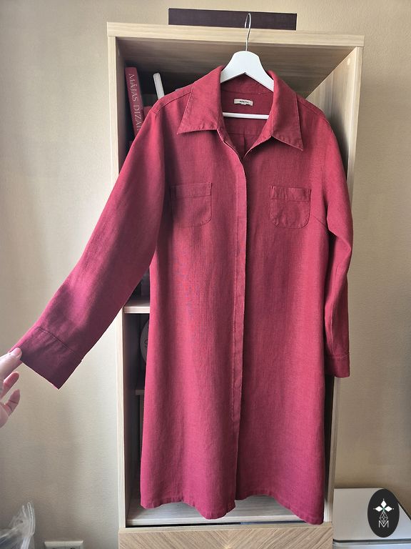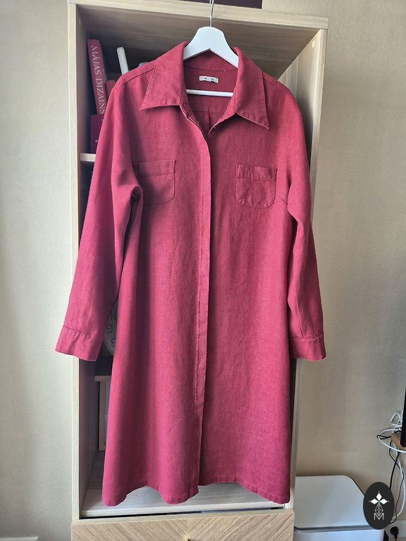 The blue one is in excellent condition (made of lighter linen, approx. 185 g, tpc is thinner) and the red one (approx. 205 g linen) shows signs of use - the fabric is slightly faded in several places, for example, around the collar or underarms. In the last photo, I have marked approximately what it looks like. Perhaps you can still wear it in your garden/yard on a nice day :) I can send you the measurements. The blue dress has pockets. Handmade, sewn in Latvia.