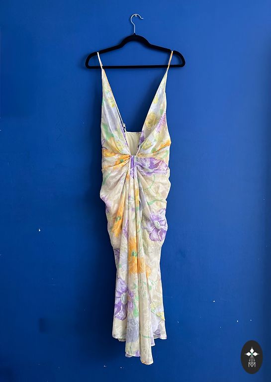 Izcili viegla, plandojoša kokteiļkleitiņa piemētota gan āras, gan iekštelpu ballītēm. Skaista, sievišķīga. Audumā iestrādāts smalks zelta pavediens.