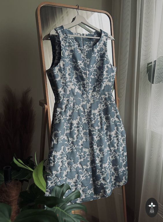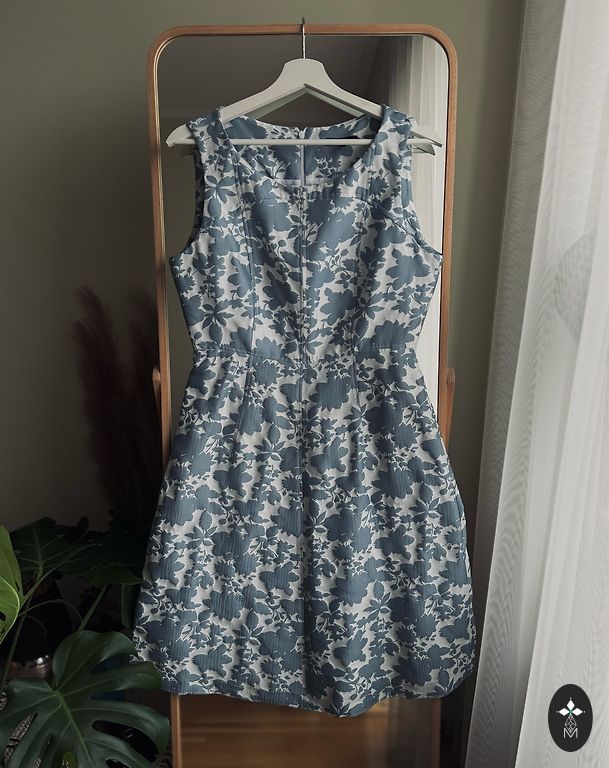 Sarafano tipo suknelė. Šilkinė medžiaga, gražus ir romantiškas raštas. Labai elegantiška.