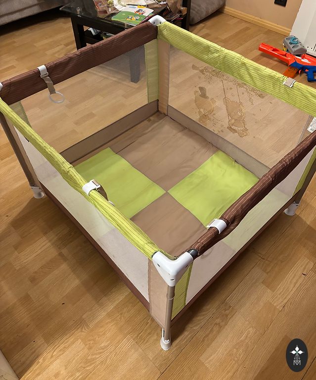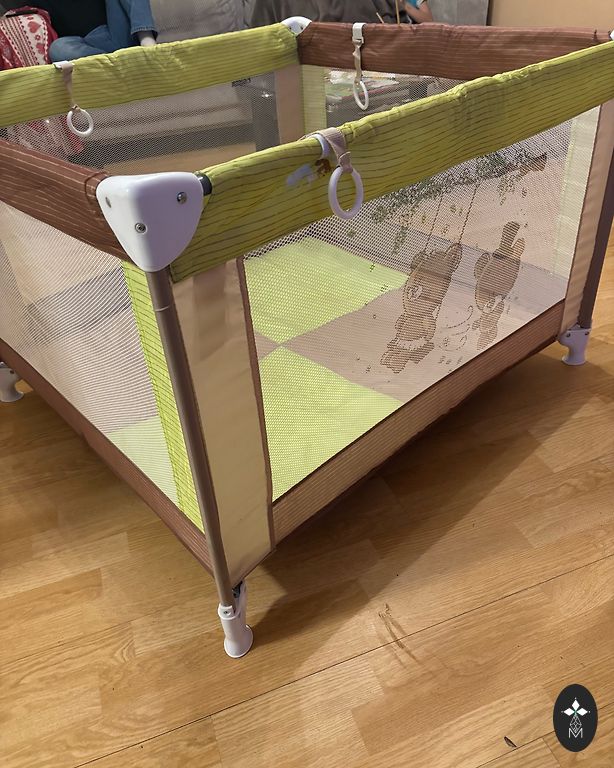 Viegli pārvietojama un salokāma bērnu gultiņa, ko viegli paņemt līdzi izbraukumos.