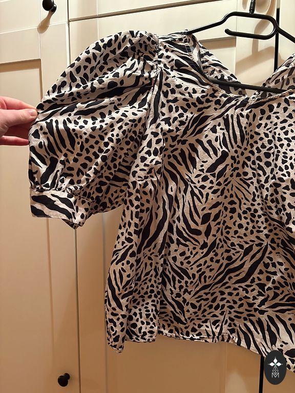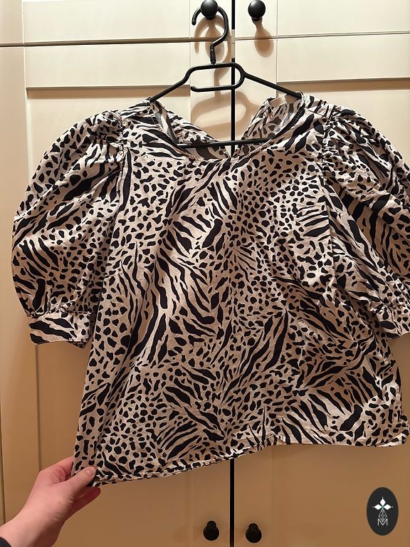Gražus spalvų derinio Laurel klasikinis palaidinukas su metalinių karoliukų akcentu aplink apykaklę ir rankogalius. Dydis 38, krūtinės apimtis 98 cm, ilgis 70 cm.