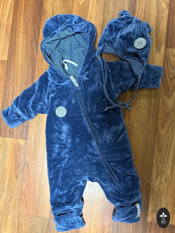 Megztas kombinezonas. Nelabai tinka šaltam orui. Neapvilktas. Nuo pečių iki kojų 56 cm.