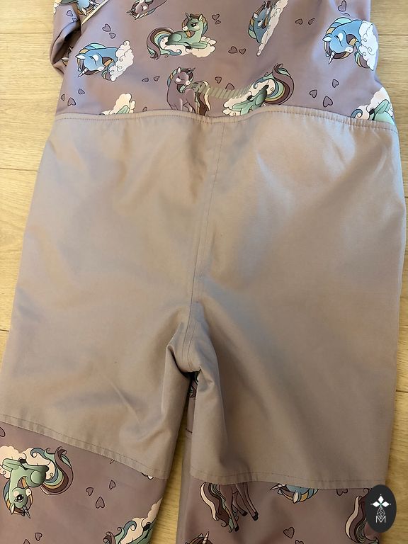 Lietots kombinezons. Oriģinālā ir ar spiedpogām, bet tās ātri pašas pogājās vaļā, tāpēc tika iešūts rāvējslēdzējs. Ja nepieciešams, to var izārdīt. Rakstīts 74cm, bet reālāk derēs 68 izmēram. Viss pārējais labā stāvoklī