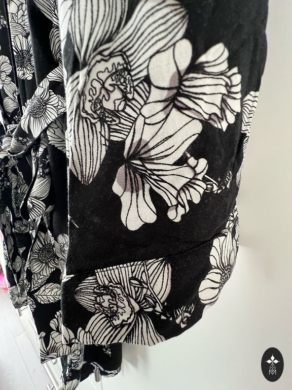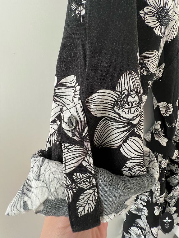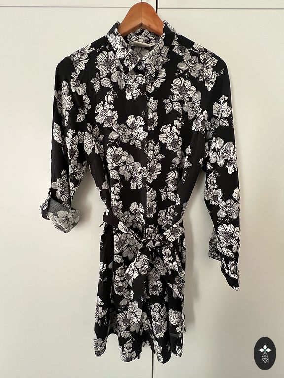 Pleci 38 cm, krūtis 51 cm, piedurknes garums 60 cm, garums 88 cm, audums stiepjas.