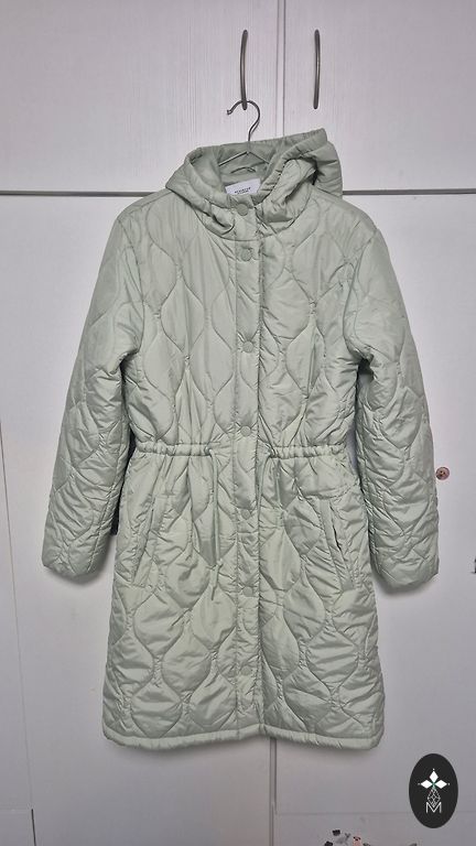 Осенне-зимнее пуховое пальто (с утиным пуховым наполнителем), на бирке указано 13-14Y на рост 164 см, в целом в хорошем состоянии, есть небольшое отверстие на рукаве. Размер S. Доставка Sutu dpd, Omniva 1,99
