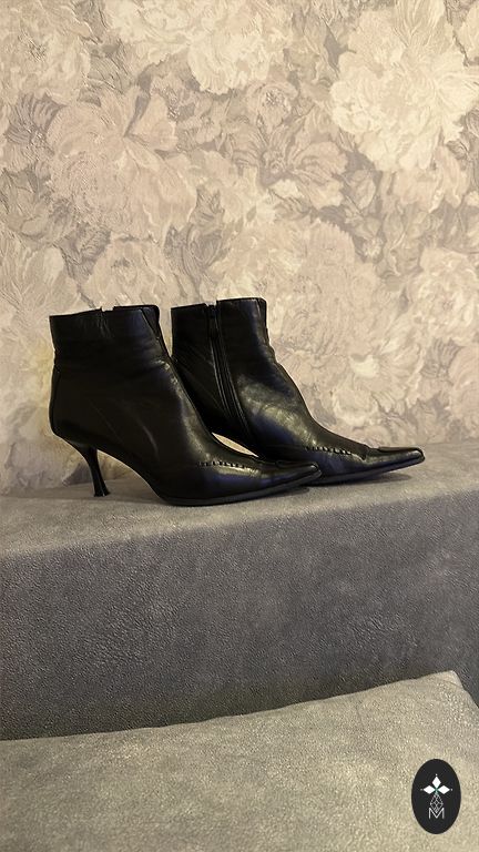 Очень удобные кожаные/лакированные полусапоги. Устойчивый каблук. В идеальном состоянии.
