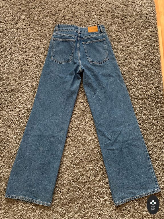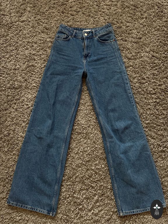Stilīgi Mid-Rise džinsi 34 izmērā, bet vairāk derēs 36 izm. Brīva piegriezuma, platas staras. Uzvilkti pāris reizes. Ļoti laba stāvoklī.