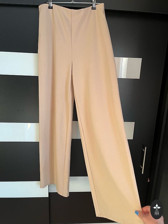 Lindex Ava kelnės, laisvos su šiek tiek platėjančiomis klešnėmis. Tinka dėvėti tiek kasdien, tiek iškilmingai. 100% liocelis (tokio pat kaip viskozė). Vidinės klešnės ilgis 72 cm. Maksimalus juosmens apimtis yra 86 cm. Spalva labiau kaip antroje nuotraukoje.