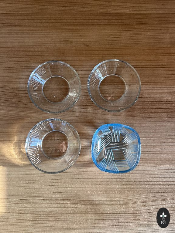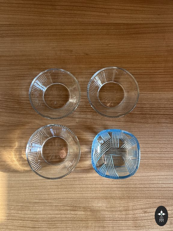 Visi akiniai puikios būklės. Akinio skersmuo - 3.7 cm, o aukštis - 5.5 cm.