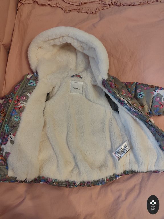 Light, convenient mid-season jacket for a girl measuring 152/158 cm. Sleeve length of the jacket is 54 cm, chest circumference is 84 cm, waist is 90 cm. The jacket is short, with a length from shoulder to bottom of 36 cm.