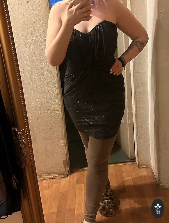 Labā stāvoklī, kleita M izmēra. Elastīga mežģīne. Aizdare ar rāvējslēdzēju. Vilkta vienu reizi - vecmeitu ballītē.