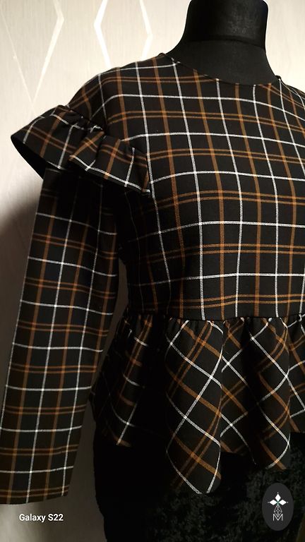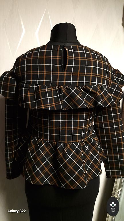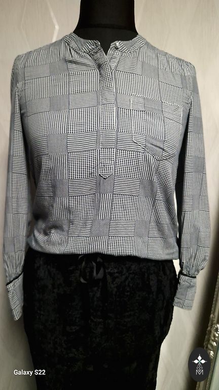 Puscaurspīdīga blūzīte ar skaistu rakstu un plecu daļā izšūtas mazas sudraba pērlītes. Sānos šķēlumiņi.