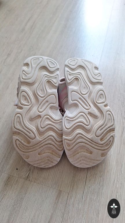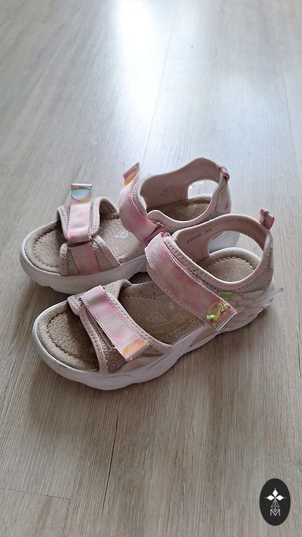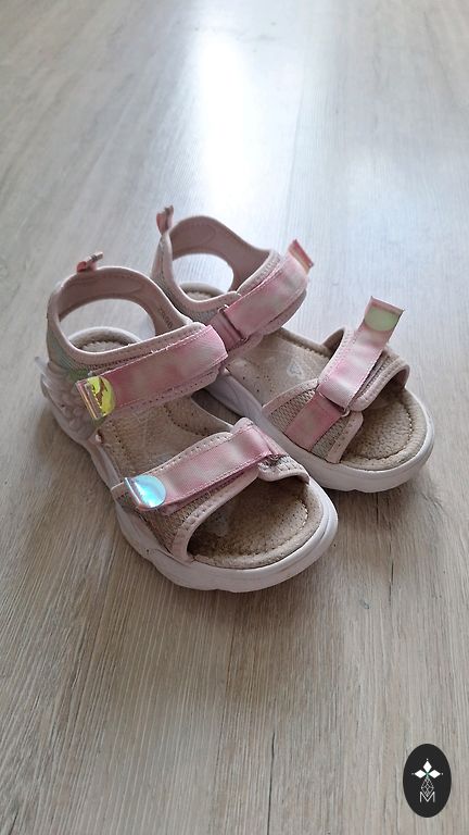Gražios sandalai. Rožinės/blizgios. Su lipukais. Vidpadis 20,5 cm.