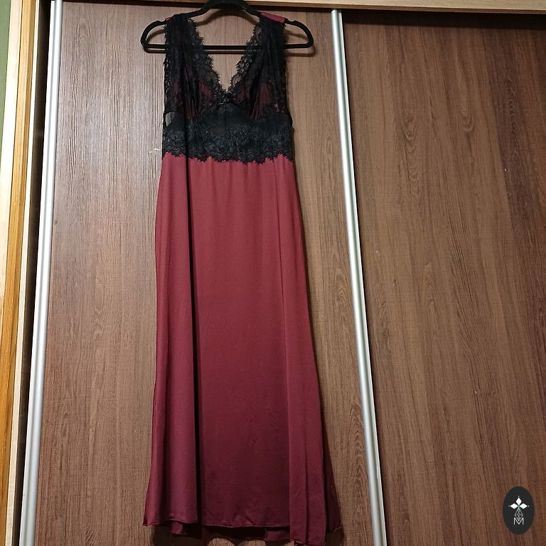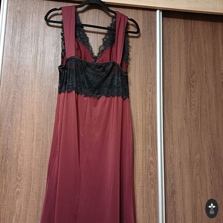 Lengva, medvilninė ir šiek tiek elastano gėlių suknelė. Su įsiuvais, užpakalinėje dalyje užsegama užtrauktuku. Krūtinės plotis 47×2, dar šiek tiek tempiasi. 44×2. Apačioje pūsta. Ilgis 81. Dydis nurodytas 44, bet tinka M.