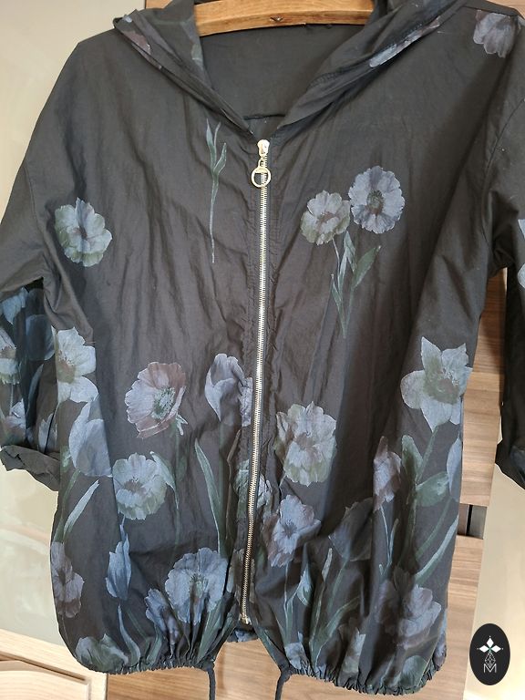 Lietota, lieliskā stāvoklī džinsa materiāla virsjaka. Aizdere ar ravēslēdzēju un spiedpogām -viss funkcionējošs. Rokām un aizmugurē savelkamas siksnas ar sprādzēm. Jakai ir ļoti daudz kabatas, visas funkcionējošas.