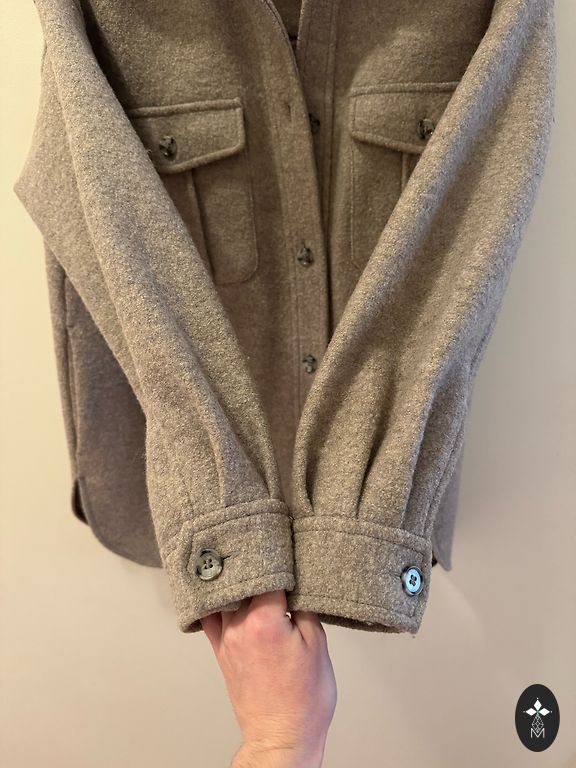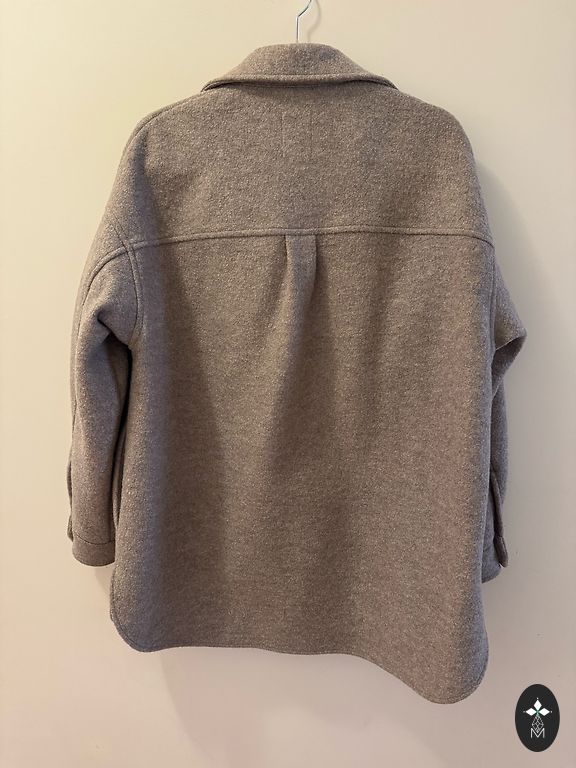 Buklėtas paltas iš itališko prekės ženklo Garcia. Šiltas, sudėtyje 40% vilnos. Ilgis - 97 cm.