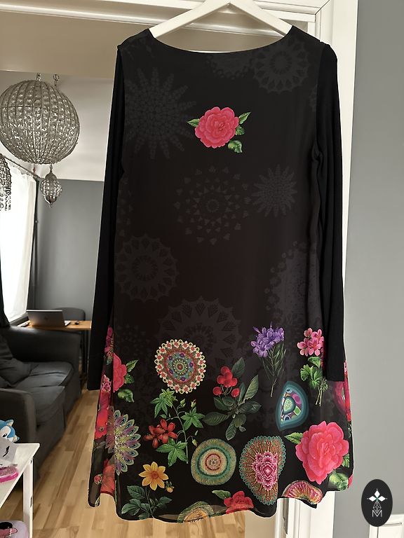 Ļoti skaista,krāsaina,spilgta kleita ar kabatiņām sānos,viskoze 70%,poliesters 30%.Skaisti gan ikdienai,gan svētkiem.