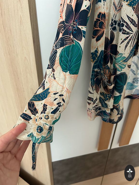 Massimo Dutti prekės ženklo švarkas. Sudėtyje yra medvilnės ir vilnos. 40 dydis, tačiau tiks M dydžiui arba S dydžiui oversize. Įsigyta Andelėje, bet, deja, netinka.