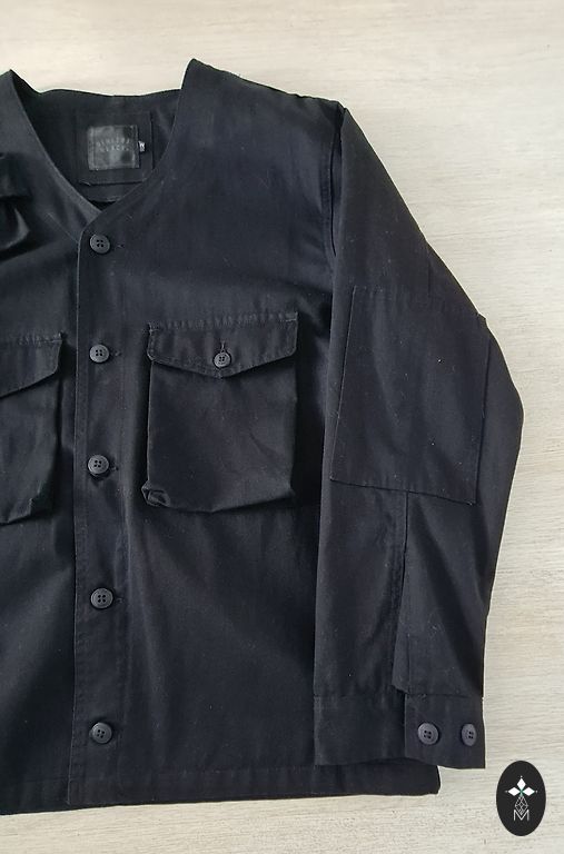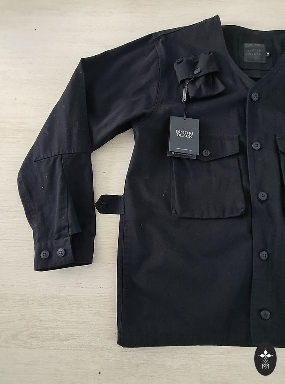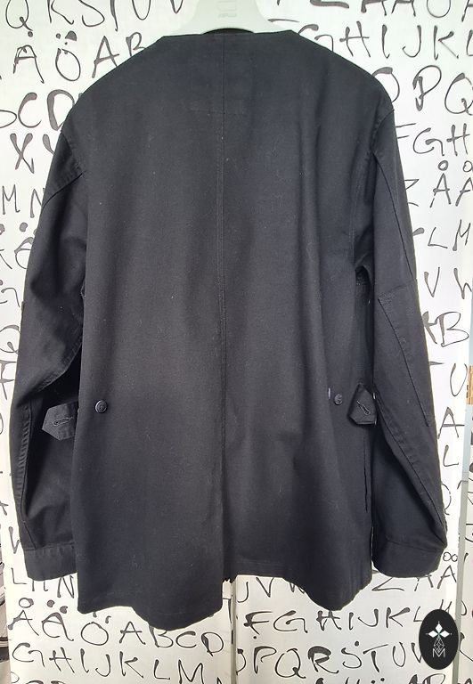 Gaiši zila žakete, viduklī sasienama. Audums stingrs un iekšpusē odere. Pasūtīju internetā (nav gludināta, tāda atnāca), bet tomēr pašai par lielu.