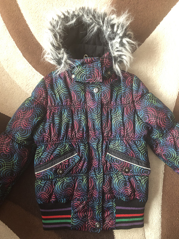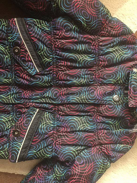 Tamsiai mėlyna Zara striukė, nurodytas dydis 9-12 mėn., 86. Iš išorės defektų nėra, tik šiek tiek susivėlusi vidinė dalis ir nusitrynęs dydžio bei logotipo užrašas. Spalvinga Sinsay striukė yra nauja, nespėjome užsidėti, taip pat 86 dydis. Tačiau ji yra šiek tiek didesnė nei Zara striukė. Abi tiks tiek vėsiam rudeniui, tiek žiemai.