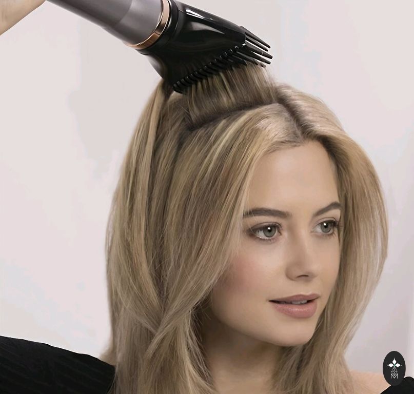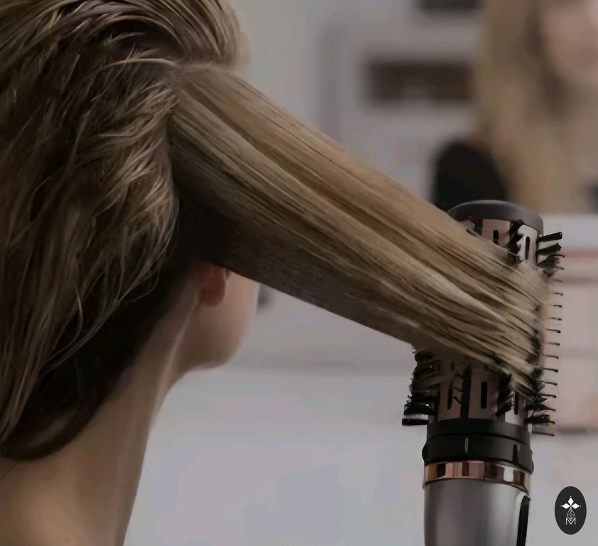 Plaukų džiovintuvas ir plaukų stiliukas.