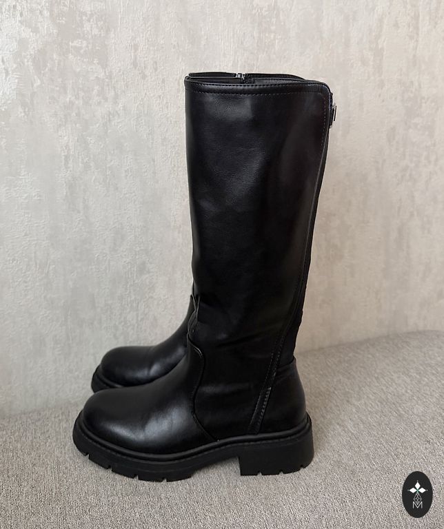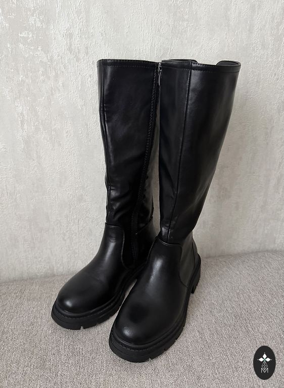 Minimalus apšiltinimas, kulnas 8 cm. Su dirželiais galima reguliuoti kojos apimtį. Nėra dėvėjimo požymių.
