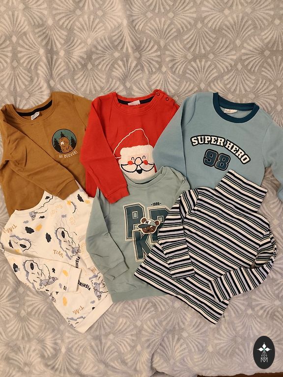 Size 92, light gray top from H&M, dark gray Pepco 104 cm, but it will fit 92 (it's smaller than H&M), and an additional top as a gift.