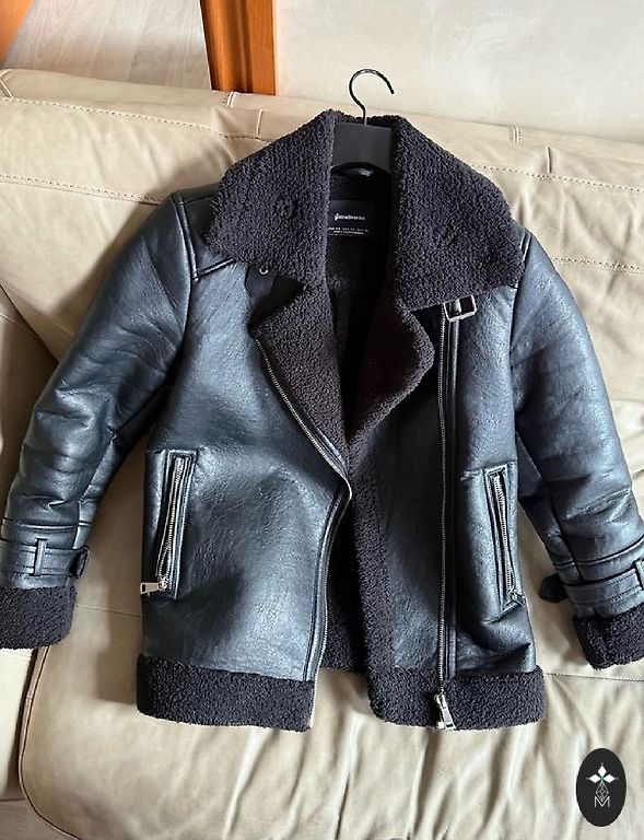 Jauna, klāt ir cenu zīme, Stradivarius mākslīgās ādas jaka ar noņemamu apkakli un lielām kabatām tās priekšpusē. Virsjakai nav defektu, pādodu, jo pirku pirms vairāk kā gada un tā kā neesmu joprojām to uzvilkusi, tad noteikti kādai citai noderēs vairāk :)